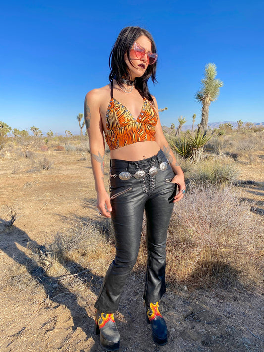 Leather Fringe Halter Top w/ Chains